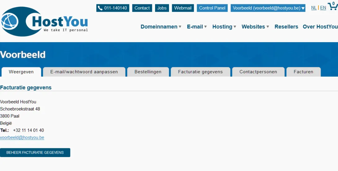 Uw accountgegevens zijn de inloggegevens op de HostYou website, alsook de taal waarin u wenst te werken.