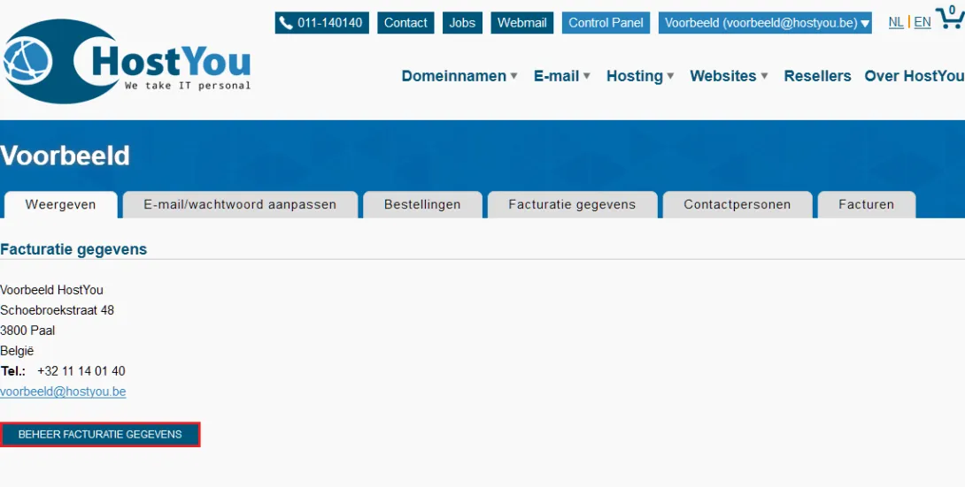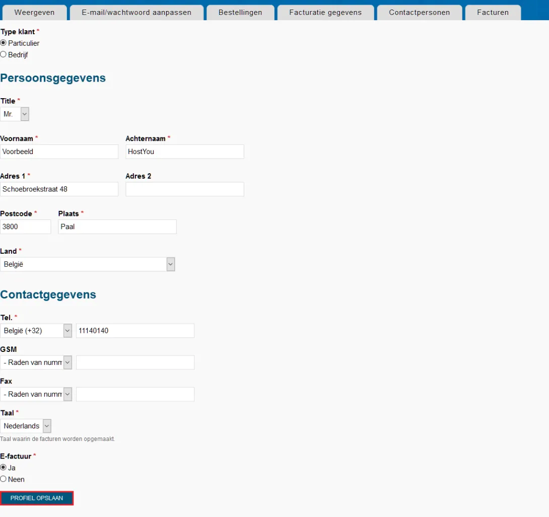 De facturatiegegevens worden gebruikt voor elke bestelling die u plaatst wanneer u met de bijhorende accountgegevens ingelogd bent.